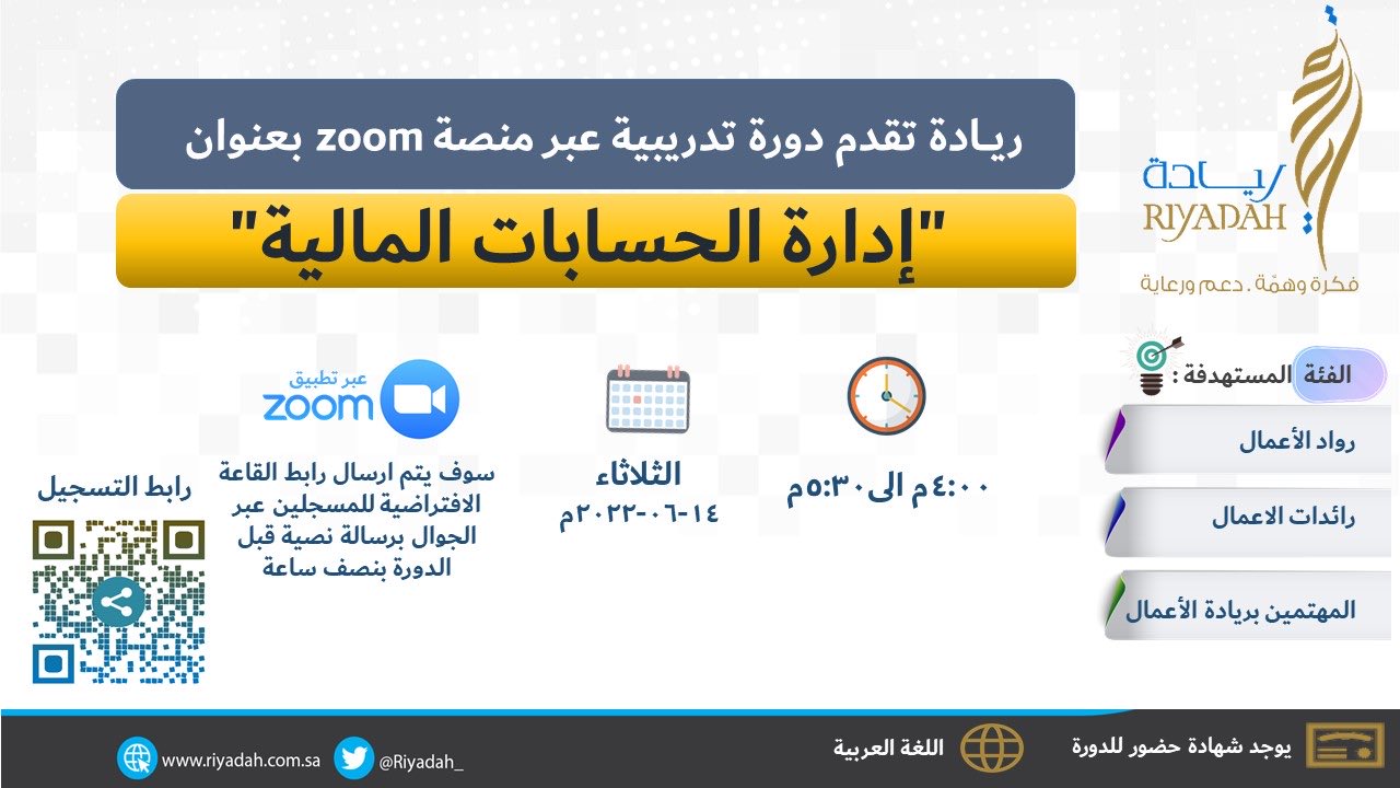 وظيفتك علينايعلن (معهد ريادة الأعمال الوطني) عبر حسابه الرسمي على (تويتر) عن إقامة دورة تدريبية مجانية عن بُعد للمهتمين بريادة الأعمال بعنوان ( إدارة الحسابات المالية ) ضمن برامج ريادة لتطوير مهارات رواد الأعمال، وذلك وفقاً للتفاصيل والشروط الآتية.
